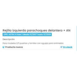 • Recambio de rejilla paragolpes izquierda para opel astra h ber. referencia OEM IAM 13241990 2301128 1400410